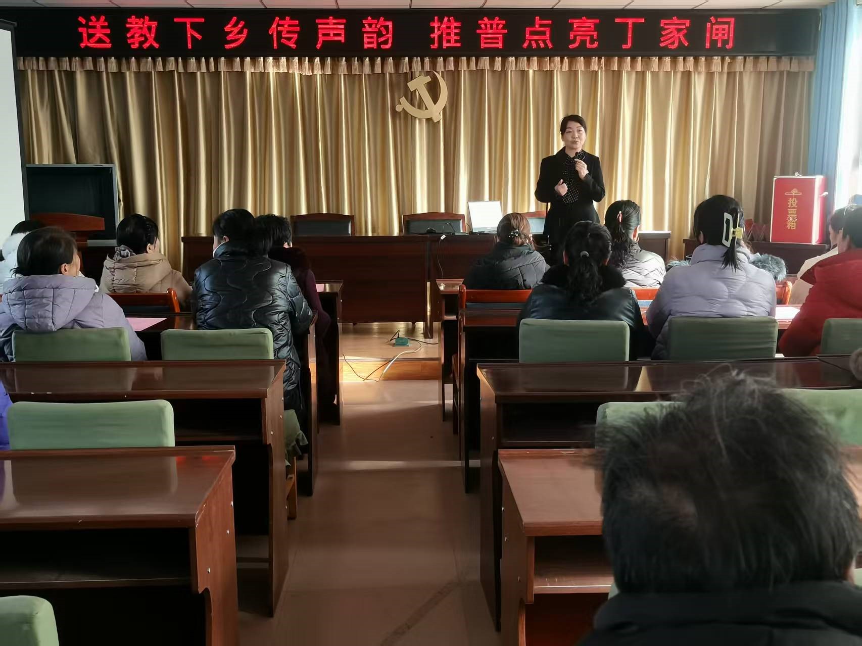 活动伊始,社区指导服务中心主任、省级普通话测试员王晓梅以 “普通话赋能乡村振兴” 为主题展开授课。她结合丁家闸村农业生产、农产品销售等实际需求,用通俗的语言解析国家通用语言文字的核心价值:“学好普通话,不仅能帮大家精准理解惠农政策、顺畅对接农业技术指导,更能在电商直播卖特产、接待乡村游客时打破沟通壁垒,让‘土宝贝’走出乡村、走向更大市场。”