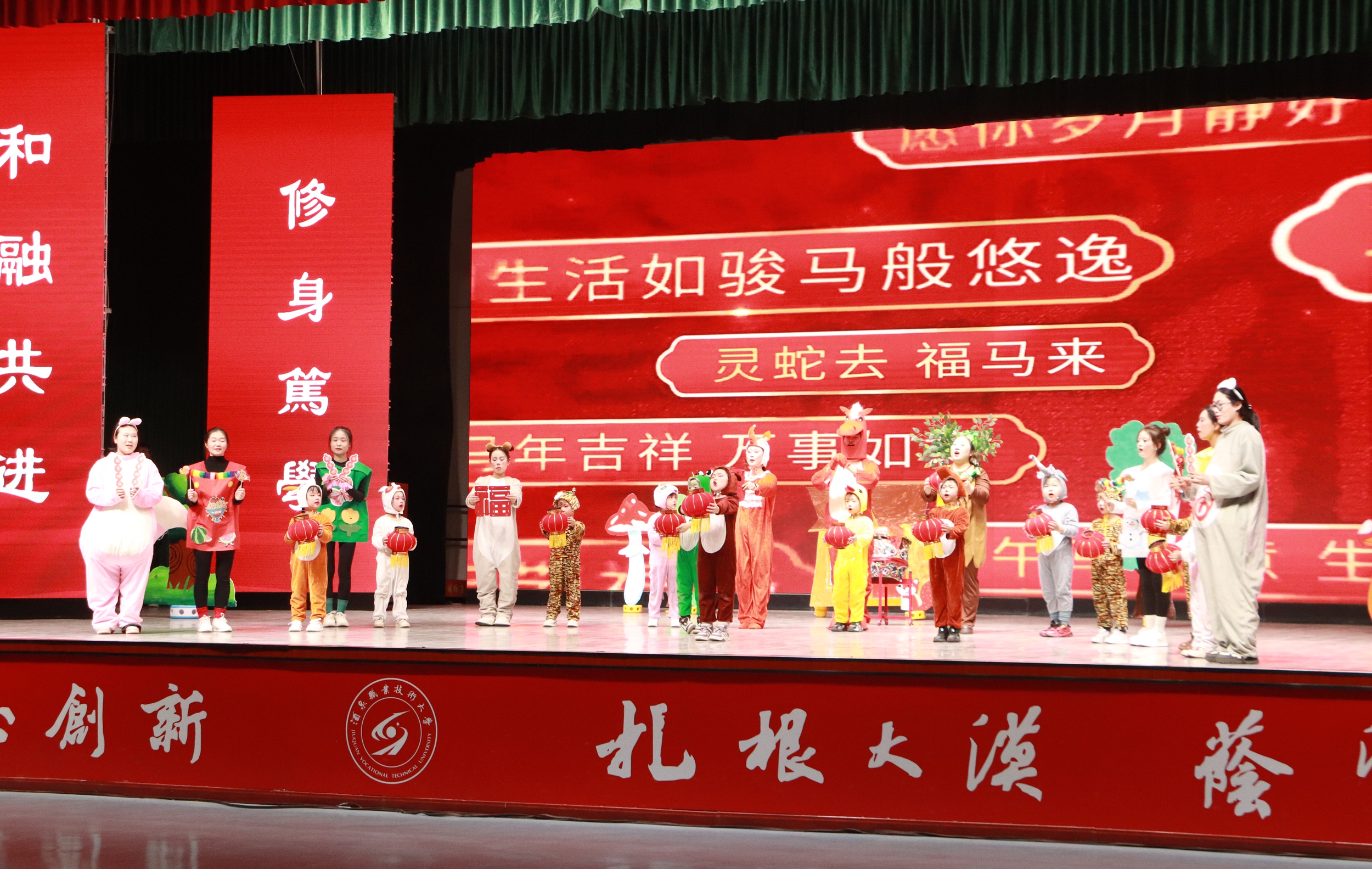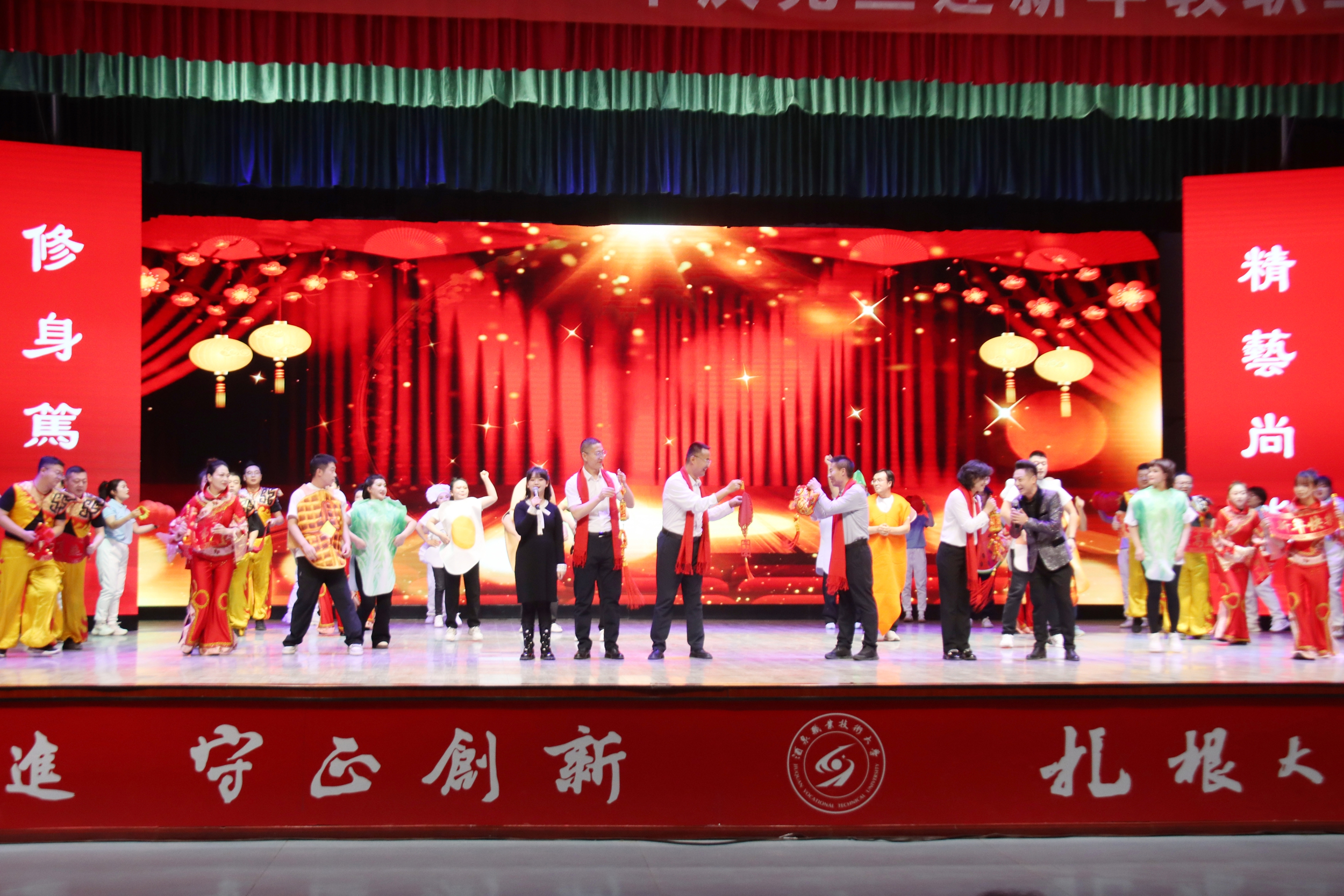晚会在序章“星火启程向未来”拉开帷幕,灯光璀璨中,教职工们以饱满的热情、昂扬的姿态,展现出全校师生锐意进取、奔赴未来的精神风貌。第一篇章“根脉深·初心如磐践使命”,聚焦教育初心与责任担当,展现教职工们扎根专业、勇攀高峰的信念与决心。第二篇章“百花兴·岗位深耕绽芳华”,展现了教职工们在不同岗位上的责任与担当、创新与活力。第三篇章“聚力行·同心共赴新征程”,教职工们用激昂的旋律、豪迈的舞姿,展现团结奋进、共迎新年的豪情,将晚会气氛推向高潮。