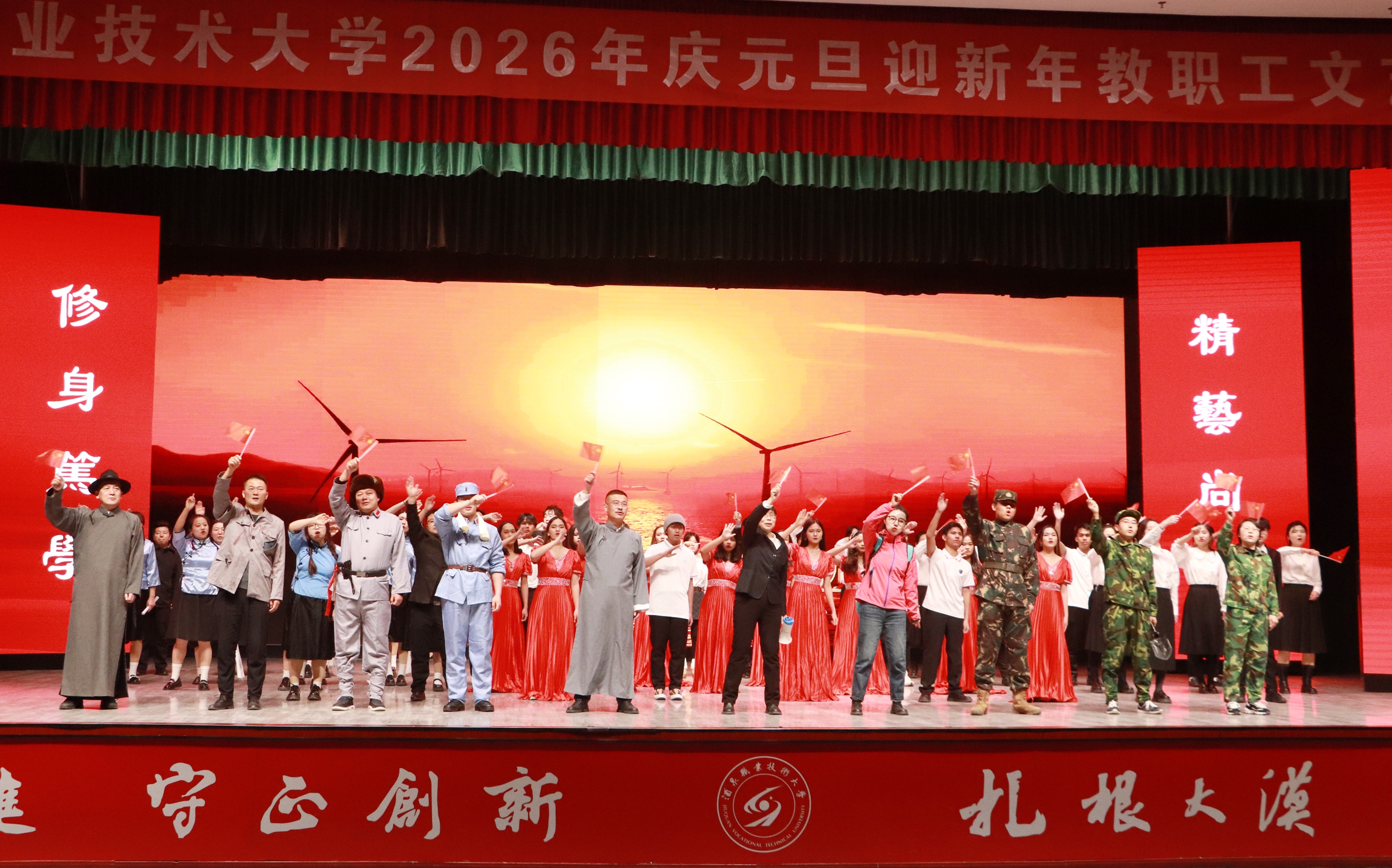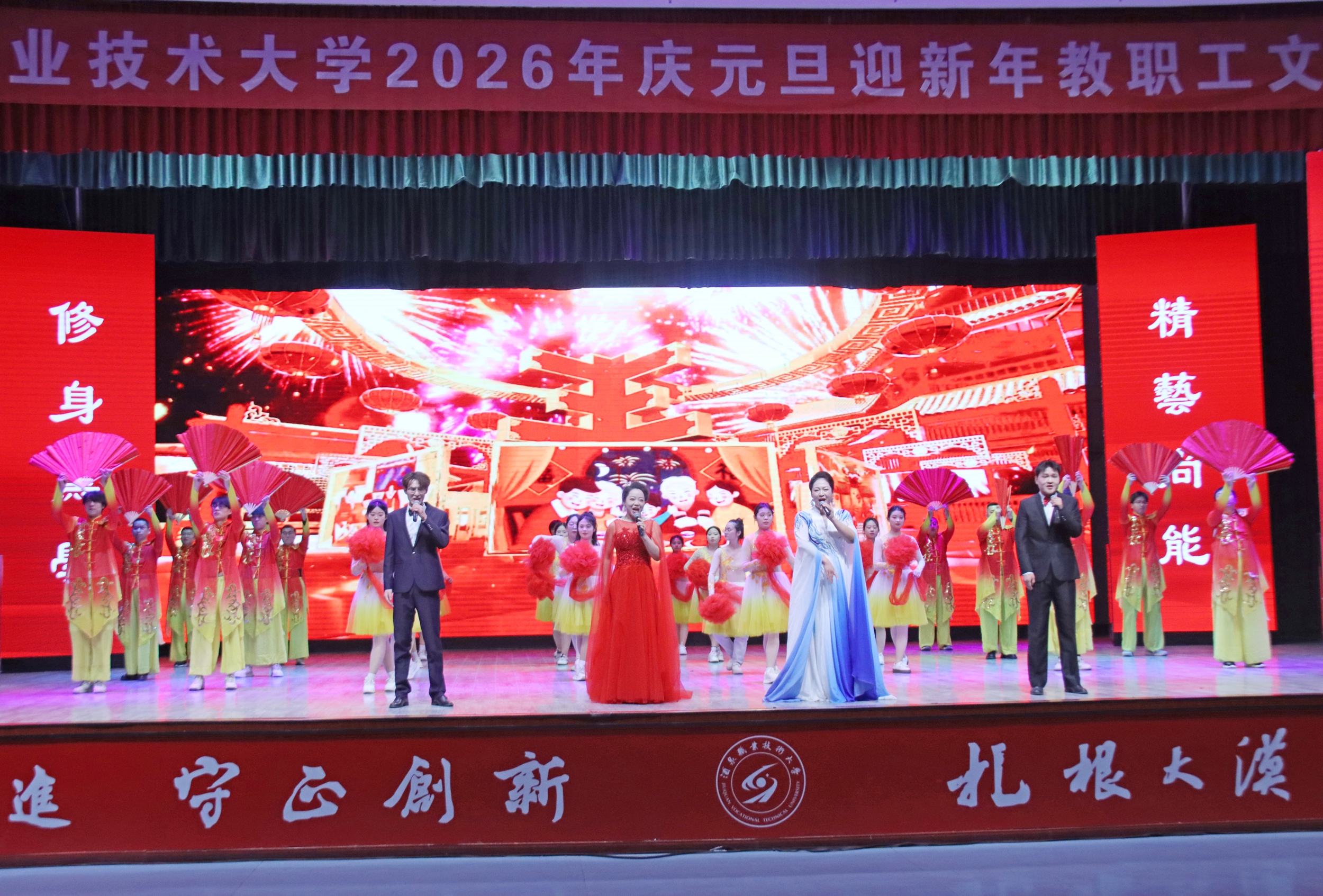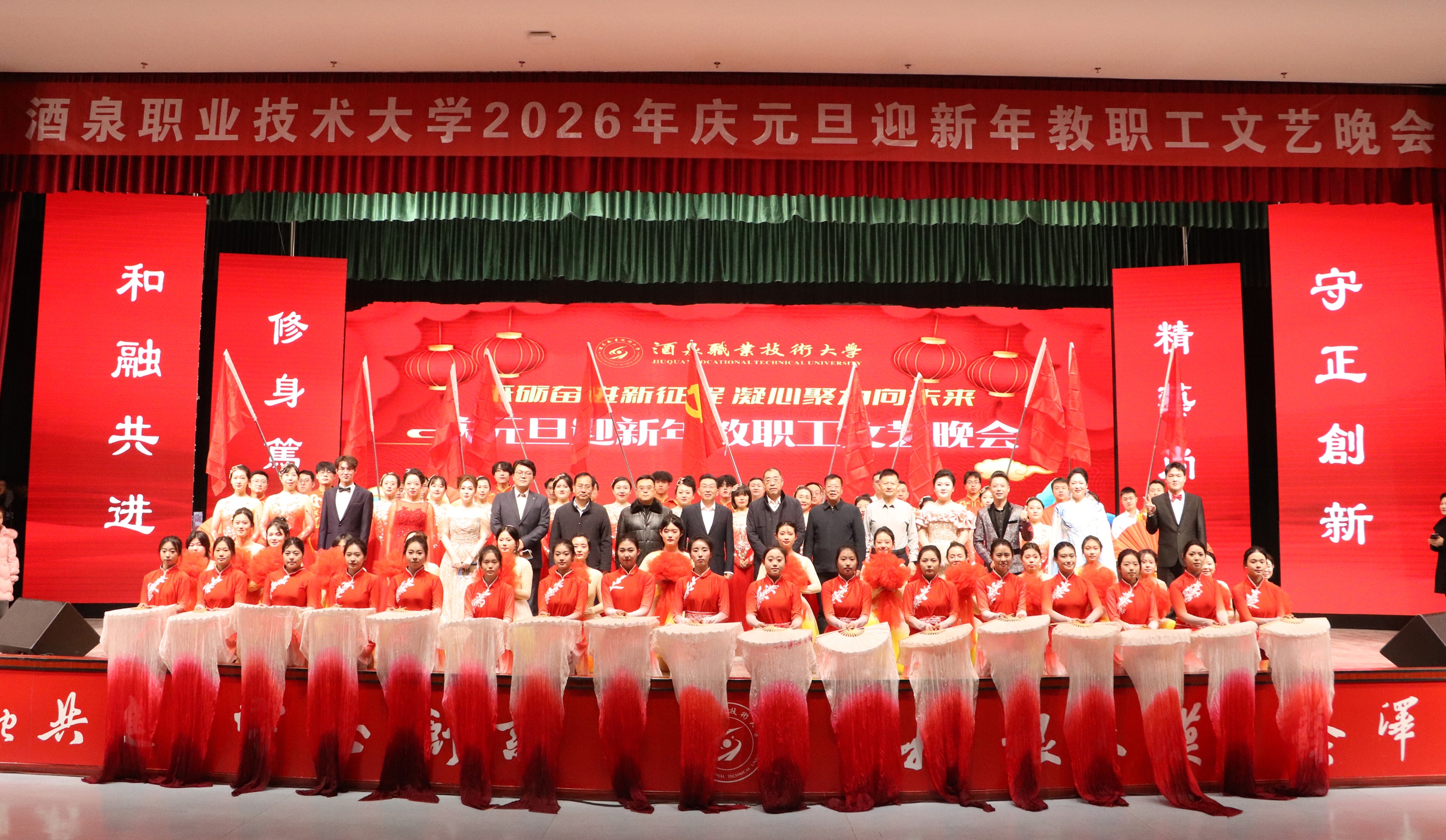 要闻快递 > 正文辞旧迎新启华章,凝心聚力谱新篇。2025年12月30日晚,学校举办“砥砺奋进新征程 凝心聚力向未来”庆元旦迎新年教职工文艺晚会。学校党委班子成员、全体教职工和酒泉卫生学校、酒泉工贸中等专业学校教师欢聚一堂,用精彩的表演回望过往耕耘,展望未来征程。
